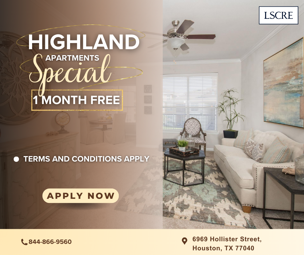Nestled in the heart of the well-established Copperfield neighborhood in Houston, Texas, Highland Apartments offers an unparalleled living experience in a prime location. Close to major highways, residents can access a wealth of shopping centers, delightful dining options, and picturesque parks for outdoor enthusiasts. Enjoy the convenience of urban living while savoring the tranquility of this idyllic residential setting. With Highland Apartments, you genuinely have the best of both worlds.